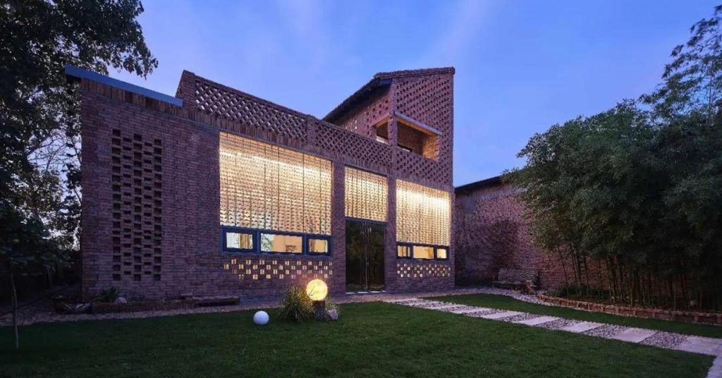 Vì căn nhà có ánh sáng kém nên Wang đã thiết kế một phần mái kính phía trên tầng 2. Đây là cách hút ánh sáng, hút gió nhằm tăng cường thông gió.