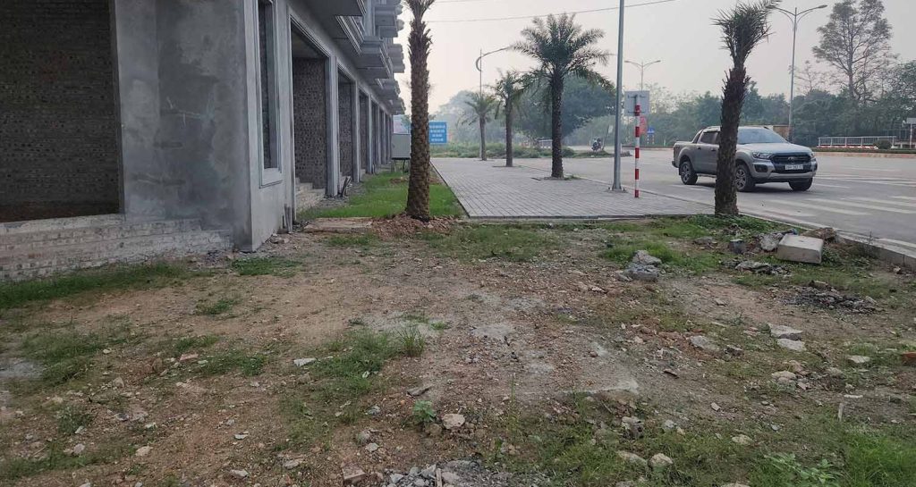 Một số dãy nhà mặt đường đã được chủ đầu tư xây dựng xong phần thô nhưng chưa hoàn thiện bên trong.