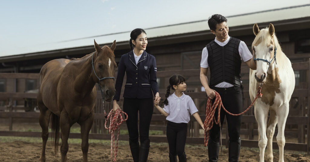 Đồng hành cùng cư dân là hàng chục cá thể ngựa thuộc những giống lần đầu tiên xuất hiện tại Việt Nam như Friesian, Quarter, và đặc biệt là giống Hãn huyết bảo mã Akhal Teke, quý hiếm nhất thế giới, thậm chí đắt đỏ hơn cả những chiếc siêu xe. Sau khi được hướng dẫn các kỹ thuật từ cơ bản tới nâng cao, cư dân đã có thể cùng các “chiến mã” tung vó trên sân biểu diễn đa năng rộng gần 1 ha, giữa khung cảnh xanh hút tầm mắt hoặc chinh phục những địa hình băng đồng đầy thử thách.