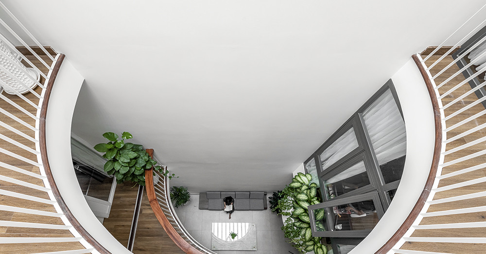 Từ trên cao nhìn xuống, cả căn nhà thật sự thoáng mát và ấn tượng với các đường cong khác nhau.