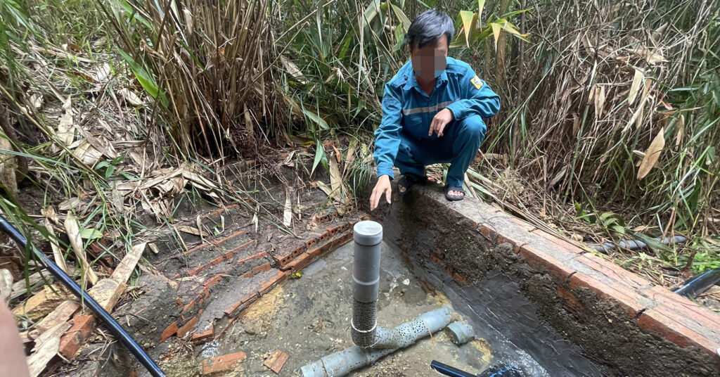 Về hiện trạng rừng, quan sát trực quan có hiện tượng phát quang một số cây tre dóc, cây bụi xung quanh hố tụ nước và đường ống dẫn nước.