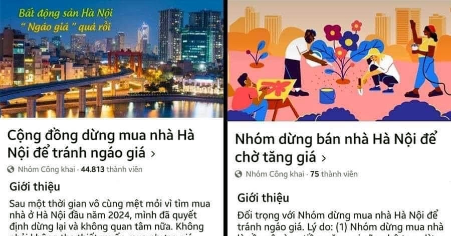 Trước sự tăng giá chóng mặt của thị trường bất động sản Hà Nội, người dùng Facebook đã lập group “Cộng đồng dừng mua nhà Hà Nội để tránh ngáo giá” nhằm chia sẻ thông tin và trải nghiệm để mua nhà Hà Nội. Ngược lại, một group có tên “Nhóm dừng bán nhà Hà Nội để chờ tăng giá” cũng xuất hiện, với đa số thành viên là người bán nhà và môi giới, nhằm trao đổi quan điểm mua bán.