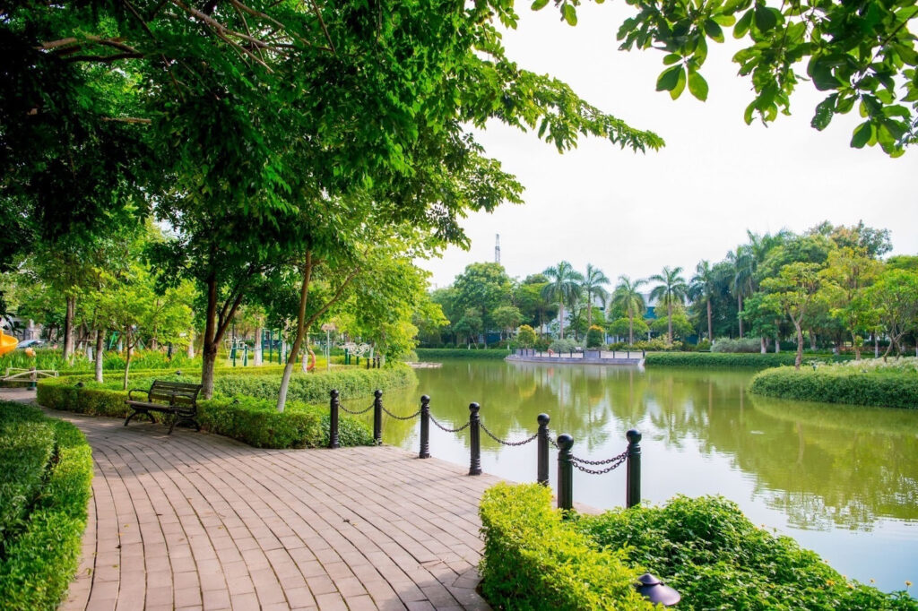 Điểm nhấn đầu tiên là không gian xanh chiếm diện tích lớn với hồ điều hòa rộng lớn, bộ ba công viên Center Musical Park, Harmony Park, Melody River Park. Các tuyến phố nội khu rợp bóng cây, xen kẽ cùng quảng trường nhạc nước rực rỡ ánh sáng tạo nên một không gian sống vừa gần gũi thiên nhiên, vừa giàu tính nghệ thuật.