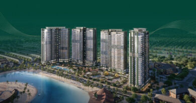 Ba tòa tháp của dự án được ví như ba hòn đảo lớn, mô phỏng hình ảnh rồng uốn lượn, tạo nên không gian kiến trúc vừa hiện đại, vừa mang hơi thở di sản. Từng chi tiết như ban công rộng mở, cửa kính lớn đón trọn nắng gió, đều được tính toán tỉ mỉ để tối ưu hóa trải nghiệm sống.