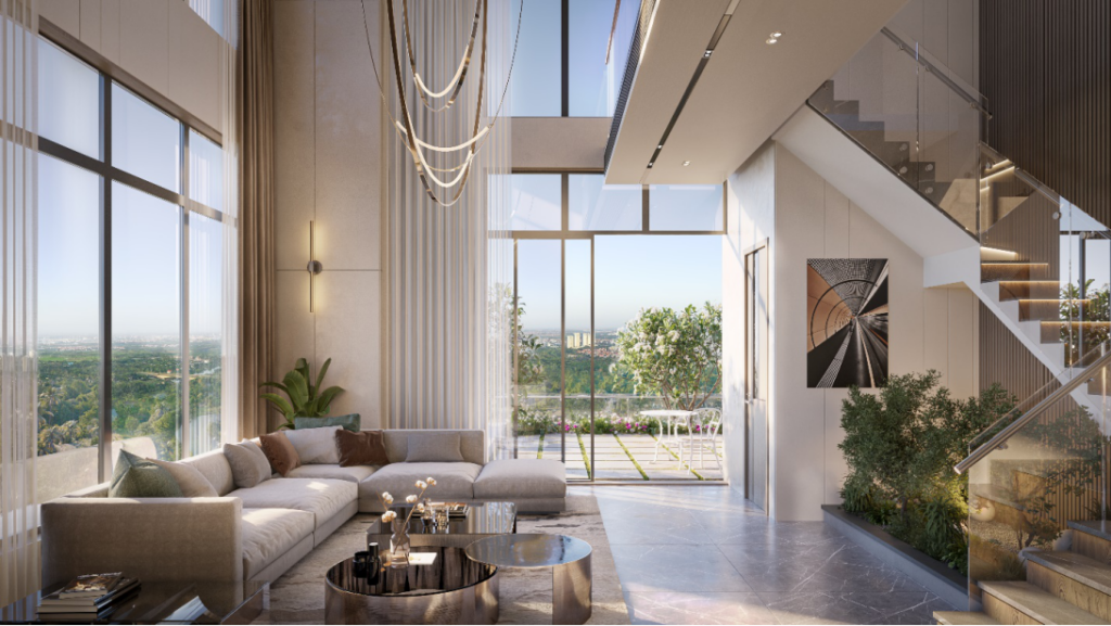 Tại các căn hộ Sky Duplex, nhà sáng lập thiết kế đa dạng diện tích. Tổng diện tích sàn căn lớn nhất hơn 180 m2, phù hợp cả gia đình trẻ thành đạt lẫn đa thế hệ. Với lợi thế tầm nhìn rộng mở tại vị trí “trái tim” của dự án, căn hộ không chỉ mang lại không gian sống tiện nghi, kết hợp giữa thiên nhiên và kiến trúc hiện đại, đáp ứng nhu cầu sống xanh và nghỉ dưỡng cao cấp.