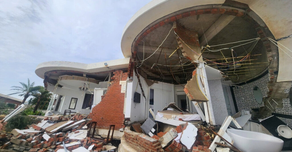 Như VietNamNet phản ánh, sau bão số 10 tại Khu Resort Hoa Tiên Xuân Thành ở khu du lịch Xuân Thành (thuộc xã Tiên Điền) có nhiều căn villa bị sóng đánh đổ sập và hư hỏng nặng nề. Hàng chục căn biệt thự sang trọng nằm sát biển có giá trị hàng chục tỷ đồng giờ chỉ còn lại là những mảng tường đổ sập, nền móng trơ trọi nằm ngổn ngang giữa bãi cát.