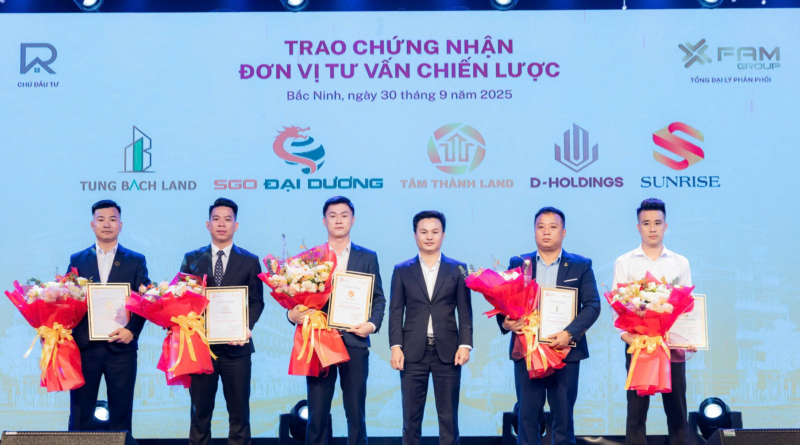 Đại diện tổng đại lý FAM Group trao chứng nhận cho các đơn vị tư vấn chiến lược cho dự án