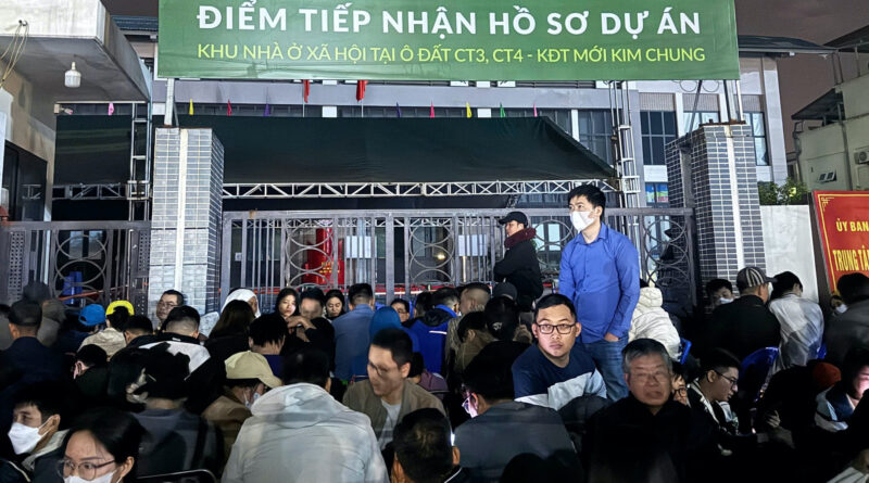 Theo thông báo của Sở Xây dựng Hà Nội, thời điểm tiếp nhận hồ sơ chính thức dự án nhà ở xã hội CT3 khu đô thị Kim Chung (xã Thiên Lộc) là ngày 17/11. Tuy nhiên, từ cuối giờ chiều 16/11, dòng người đã kéo đến khu vực nhận hồ sơ dự án tại Trung tâm Văn hóa – Thông tin & Thể thao của xã Thiên Lộc để giữ chỗ. Nhiều người mang theo nước uống, đồ ăn, ghế gấp, chăn… sẵn sàng cho một đêm dài.