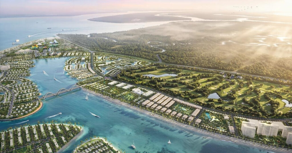 Nằm ở lõi trung tâm của Vịnh Tiên, hai khu Compound và Rowhouse hội tụ tại giao điểm của hai trục huyết mạch quan trọng bậc nhất đại đô thị biển. Cụ thể, trục Tương Lai rộng 50m dẫn thẳng về nhà ga Metro Depot và mạng lưới tiện ích, trong khi trục Thời Đại 5 rộng 35m là tuyến tiếp cận trực tiếp Nhà hát Sóng Xanh và Vincom Mega Mall. Chính vị trí giao thoa này giúp cả hai khu nắm giữ “lợi thế kép” về kết nối và cảnh quan không gian sống khác biệt. Chỉ trong vài phút di chuyển, cư dân tiếp cận ngay quần thể vui chơi – giải trí 122ha, từ công viên Lễ hội 5 châu, vườn thú Safari, trung tâm Outlet 20ha đến bộ đôi sân Golf 18 hố, quảng trường Welcome Park, Vincom Mega Mall và hệ thống trường học, khu đỗ xe, công viên nội khu.
